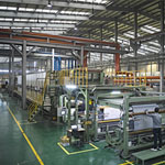 Double (steel) Belt Pressで不織布を加熱・加圧することで、ボードを生産する設備です。